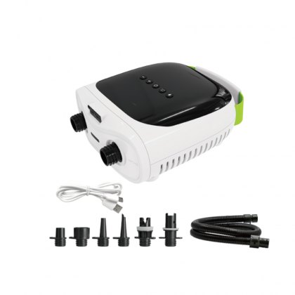 A neat pump that will handle the high pressures required for SUPs (20+ Psi), but will equally inflate inflatable kayaks and other toys.